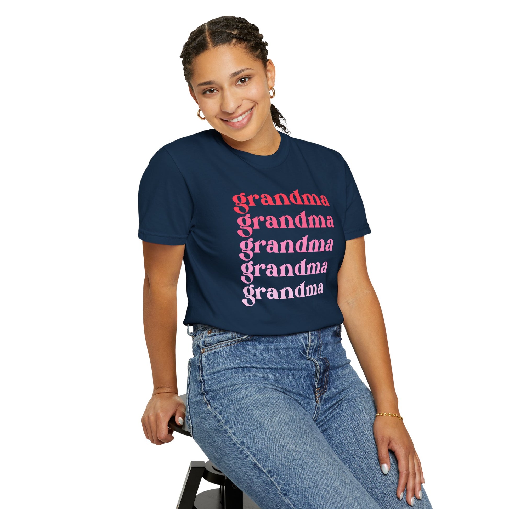 This heartwarming "Grandma" shirt is the perfect way to celebrate the special bond between grandmas and their grandchildren, or simply to embrace your love for all things pink! The design features the word "Grandma" repeated in a pink ombre gradient-transitioning from a dark pink at the top to a light pink at the bottom. It’s a sweet and stylish tribute to grandmas who cherish their grandchildren or just adore the color pink.