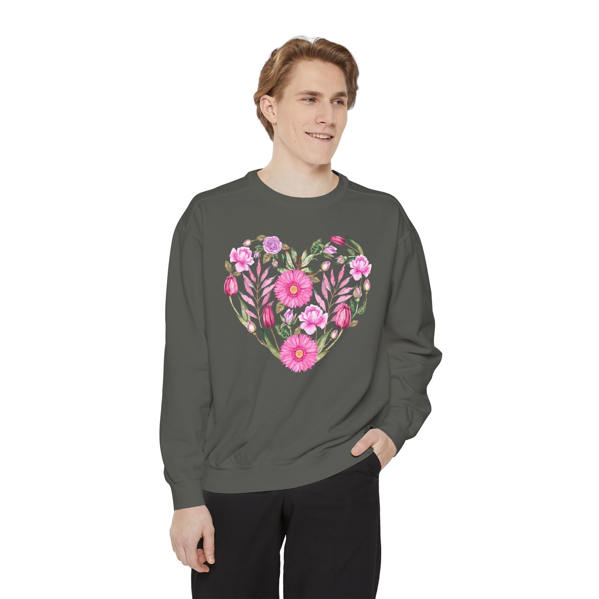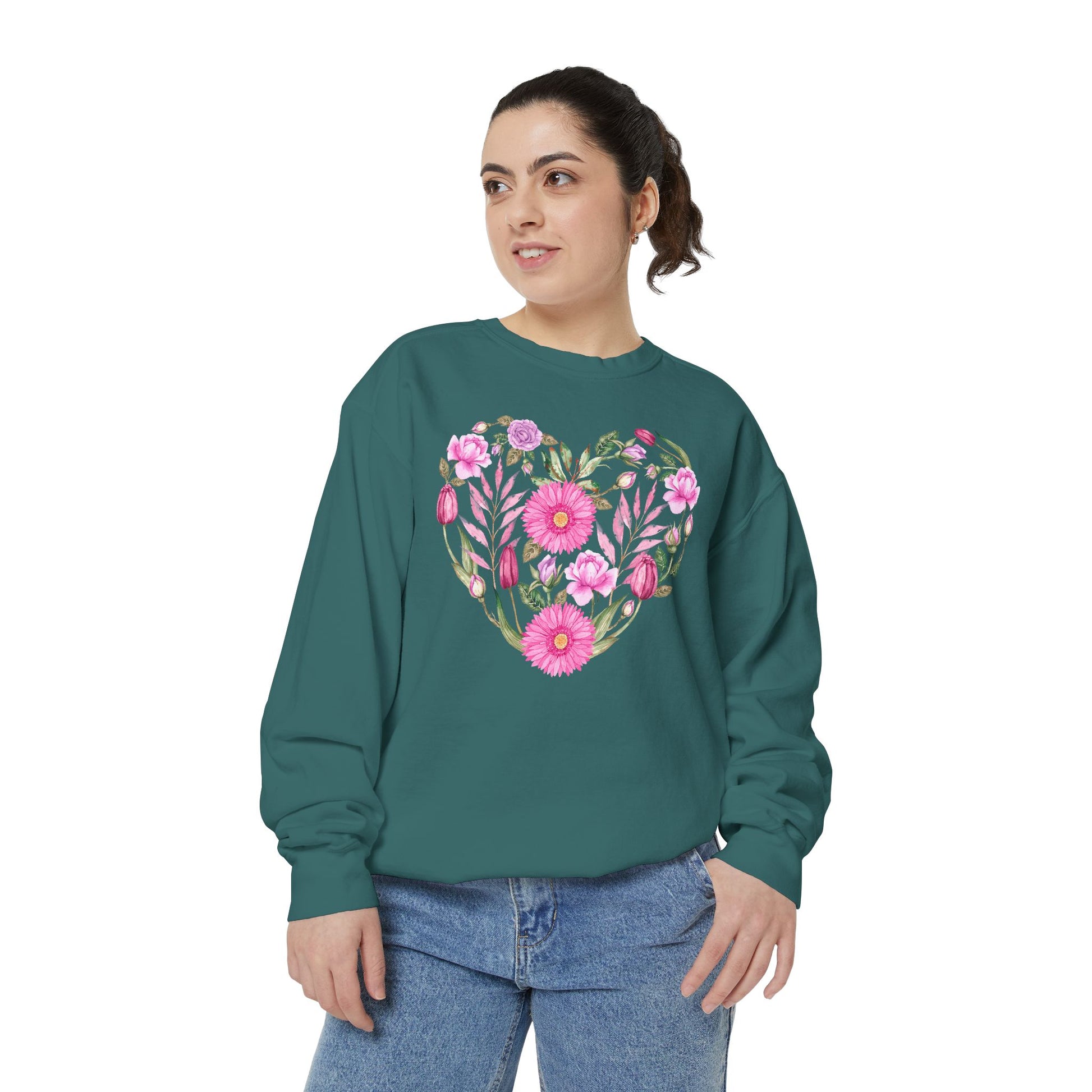 Pink Flowers Heart - Comfort Colors Sweatshirt