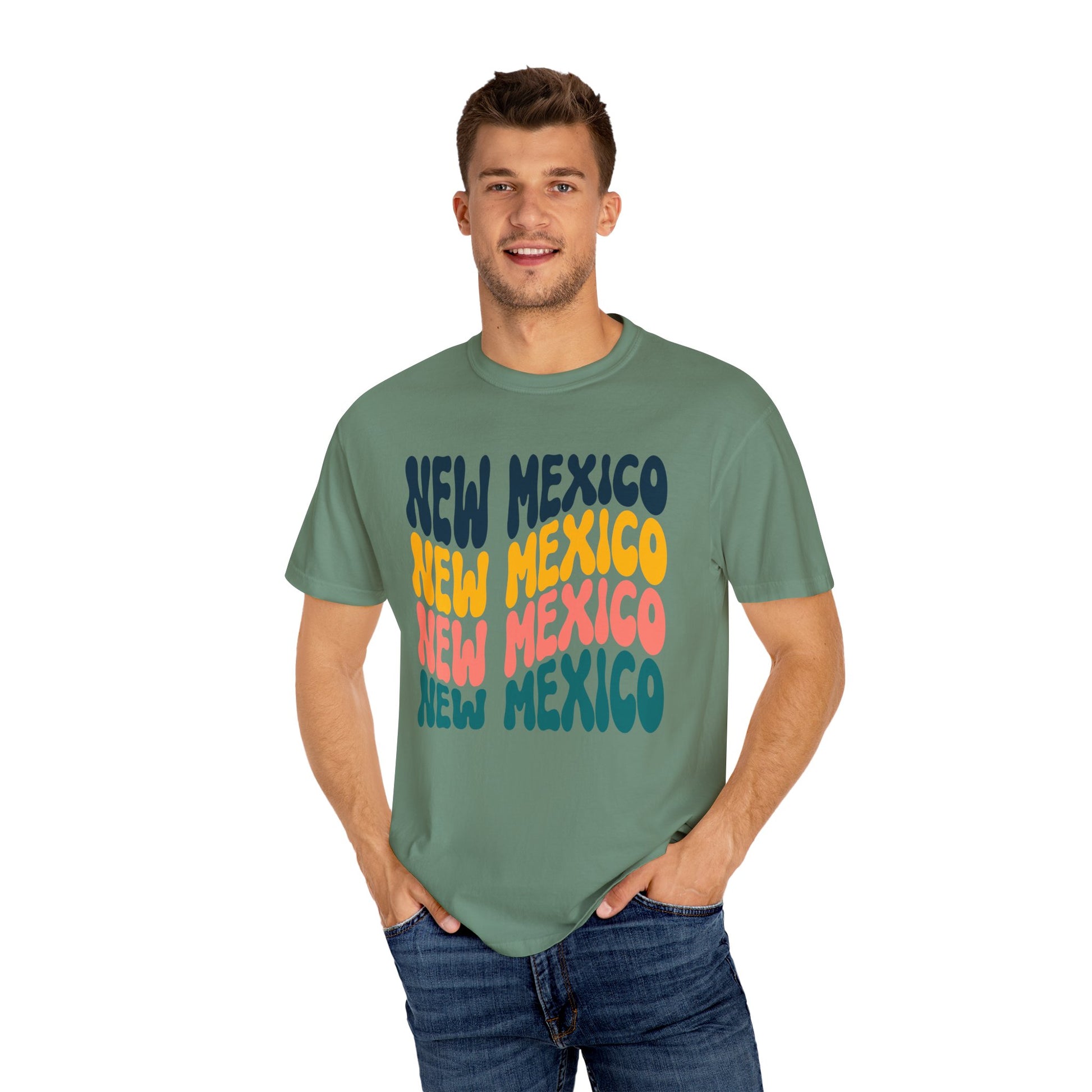 Bring the retro vibes to life with this eye-catching New Mexico Shirt. The design features a wavy, groovy font style that instantly channels a fun, vintage energy! Bold pastel colors give the shirt a laid-back, yet vibrant look - perfect for anyone who loves a pop of color and a throwback aesthetic!