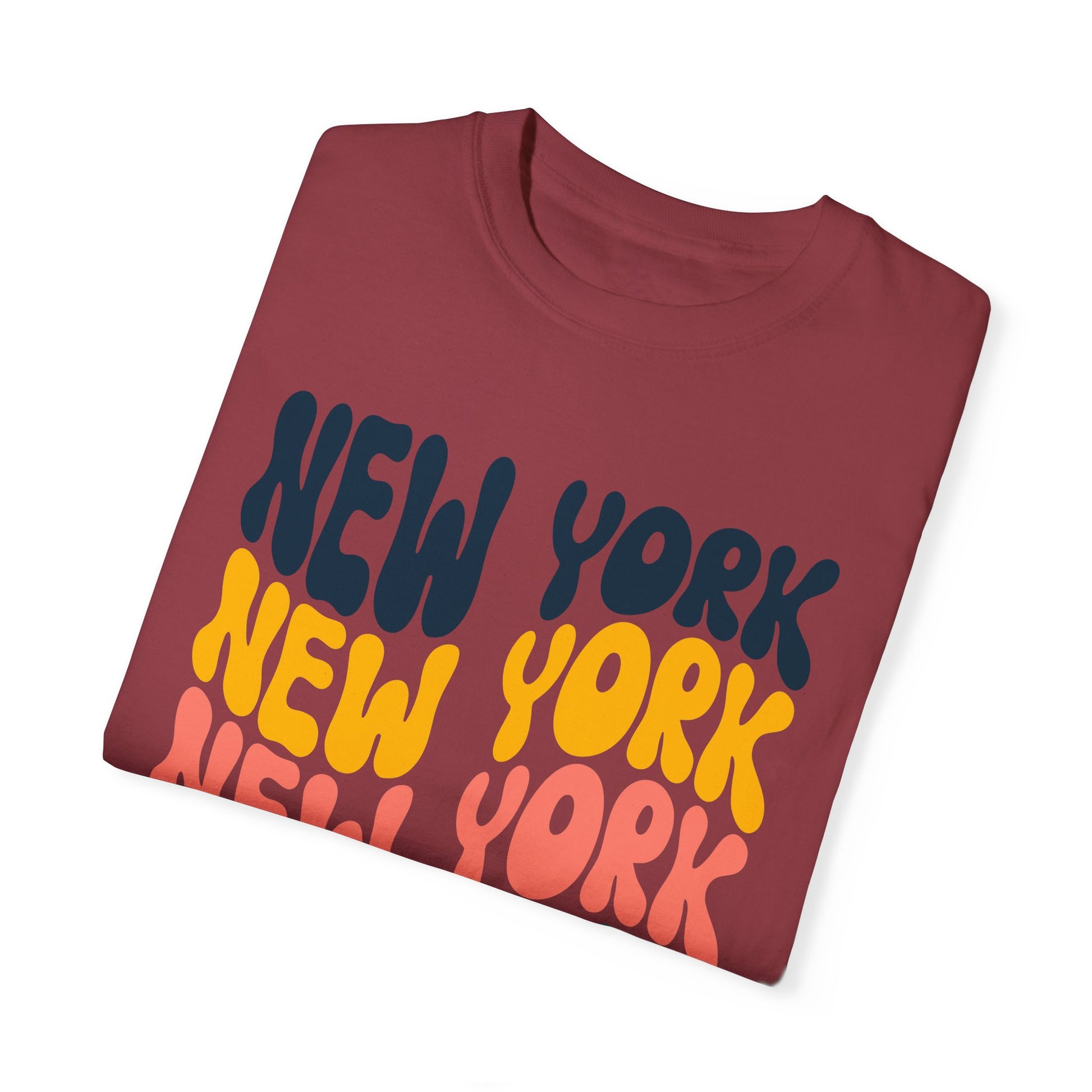 Bring the retro vibes to life with this eye-catching New York Shirt. The design features a wavy, groovy font style that instantly channels a fun, vintage energy! Bold pastel colors give the shirt a laid-back, yet vibrant look - perfect for anyone who loves a pop of color and a throwback aesthetic!