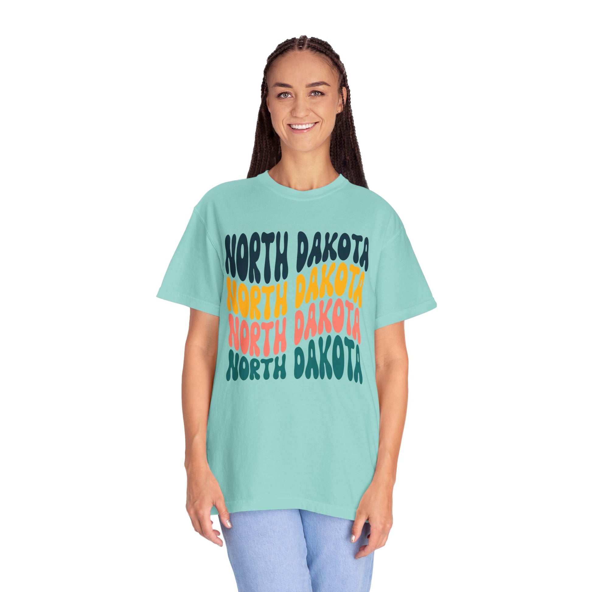 Bring the retro vibes to life with this eye-catching North Dakota Shirt. The design features a wavy, groovy font style that instantly channels a fun, vintage energy! Bold pastel colors give the shirt a laid-back, yet vibrant look - perfect for anyone who loves a pop of color and a throwback aesthetic!