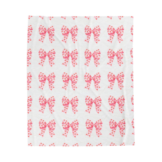 Pink Bows & Hearts - Velveteen Plush Blanket